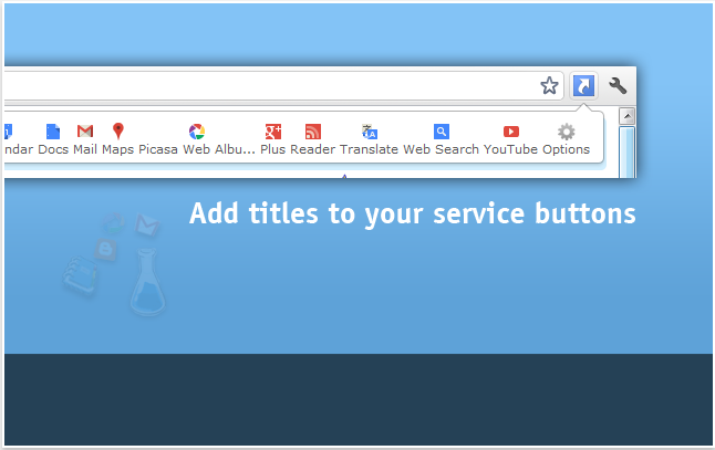 میانبر سرویسهای مهم گوگل. با نصب این افزونه آیکون سرویسهای گوگل در نوار افزونه ها مشاهده میشود که با کلیک روی هر کدام سرویس مربوطه فراخوانی میشود.