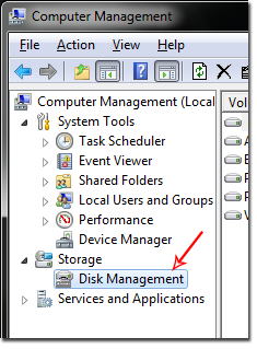 حالا از ستون سمت چپ محیط برنامه، روی گزینهی Disk Management کلیک کنید. به این ترتیب در سمت راست تمام پارتیشنهای هارد را مشاهده میکنید.