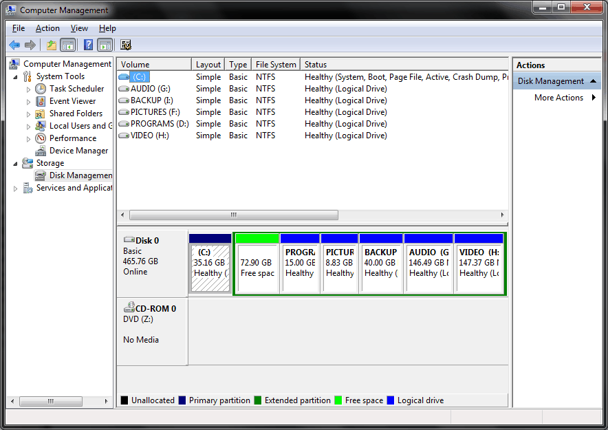 اما این تغییر فضای پارتیشن یا پارتیشنبندی هارد دیسک، حتما نیاز به نرمافزار جداگانه ندارد. چون خود ویندوز در ابزارهای پیش فرضش یک ابزار و قابلیت به همین منظور قرار داده است. درست است که به انعطاف و قدرت نرمافزارهای ساخته شده نیست، اما در حد معمولی و در بیشتر اوقات نیاز ما را کامل برطرف میکند. ابزاری که با آن میتوانیم به راحتی هارد را پارتیشن بندی کنیم، میزان فضای پارتیشنها را تغییر دهیم، عنوان پارتیشنها را تغییر دهیم، مشخصات کامل یک پارتیشن را مشاهده کنیم، یک پارتیشن را فرمت کنیم یا پارتیشنی را کاملا حذف کنیم تا فضای اختصاص داده به آن به هارد دیسک برگردد.
