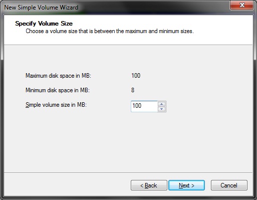 در پنجرهی بعد بدون ایجاد تغییر، روی دکمهی Next کلیک میکنیم. اینجا مقدار حجم پارتیشن را میبینیم.