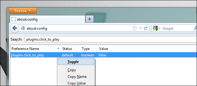 حالا در کادر جستجوی این صفحه عبارت plugins.click_to_play را وارد کنید.