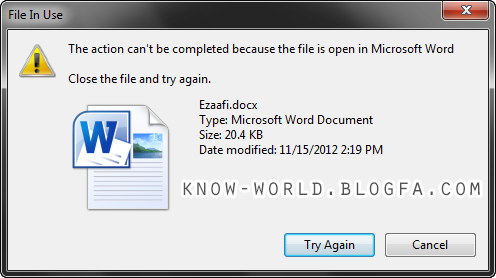 برای حذف یا جابجا کردن آن فایل ابتدا باید آن را از حالت قفل درآوریم. به عبارتی باید برنامه و پردازشی که در حال استفاده از آن فایل است را ببندیم تا فایل آزاد شود.