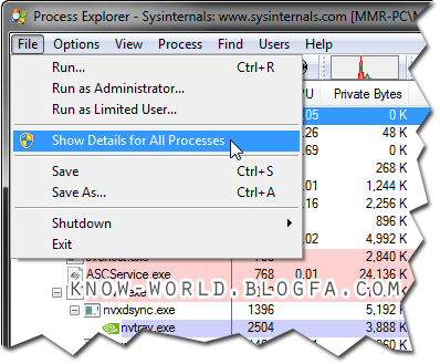 برای شروع باید برنامه را در حالت مدیر (As Administrator) اجرا کنید یا از منوی File گزینهی Show Details for All Processes را انتخاب کنید.