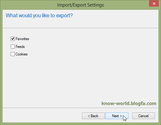 در پنجرهی بعدی گزینهی Favorites را انتخاب کنید.