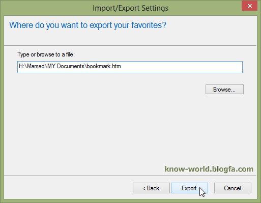 پشتیبان گیری از بوکمارک های مرورگر