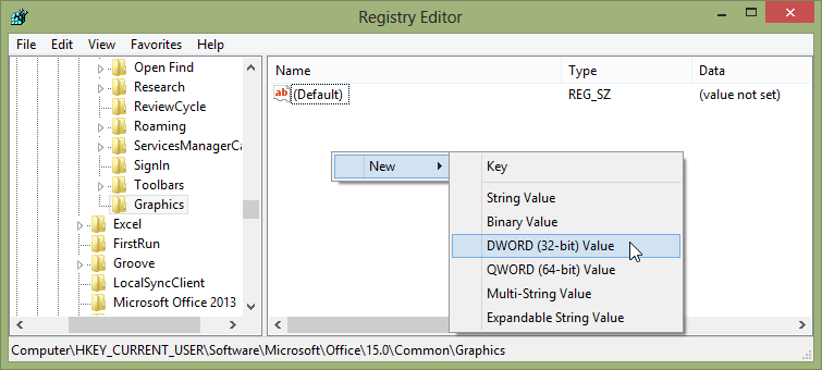 HKEY_CURRENT_USER\Software\Microsoft\Office\15.0\Common