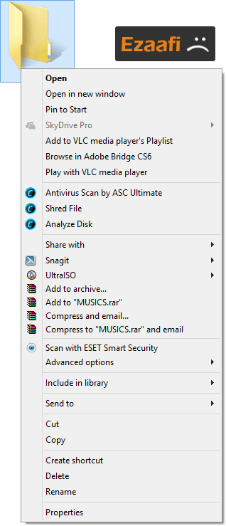 » ویرایش منوی کلیک راست روی پوشه ها