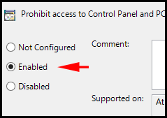 برای برگشت به حالت اولیه باید دوباره حالت گزینه را از Enable به Disable و یا Not Configured تغییر دهید.