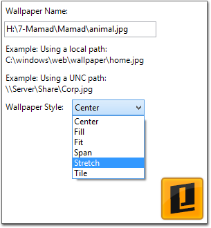 در پنجرهی باز شده حالت گزینه را روی Enable قرار دهید. سپس در قسمت Wallpaper Name آدرس تصویر مورد نظر برای صفحهی زمینه دسکتاپتان را وارد کنید. (آدرس را به همران نام و پسوند تصویر وارد کنید.) در قسمت Wallpaper Style نیز میتوانید حالت تصویر را برگزینید. (تمام صفحه، وسط، کش آمده و ...)