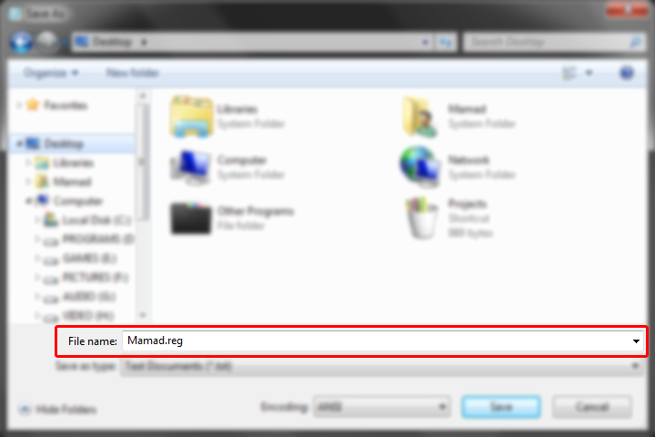 بعد اون رو با پسوند .reg ذخیره کنید.